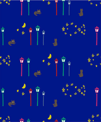 学生コメント:ねこが夜の街でおさかな星を眺めています。ねこや星が好きな方に手に取っていただけたら嬉しいです。