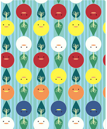 学生コメント:モチーフが織りなす言葉あそび。この布を使う人が楽しく明るい気持ちになってくれたら嬉しいです。
