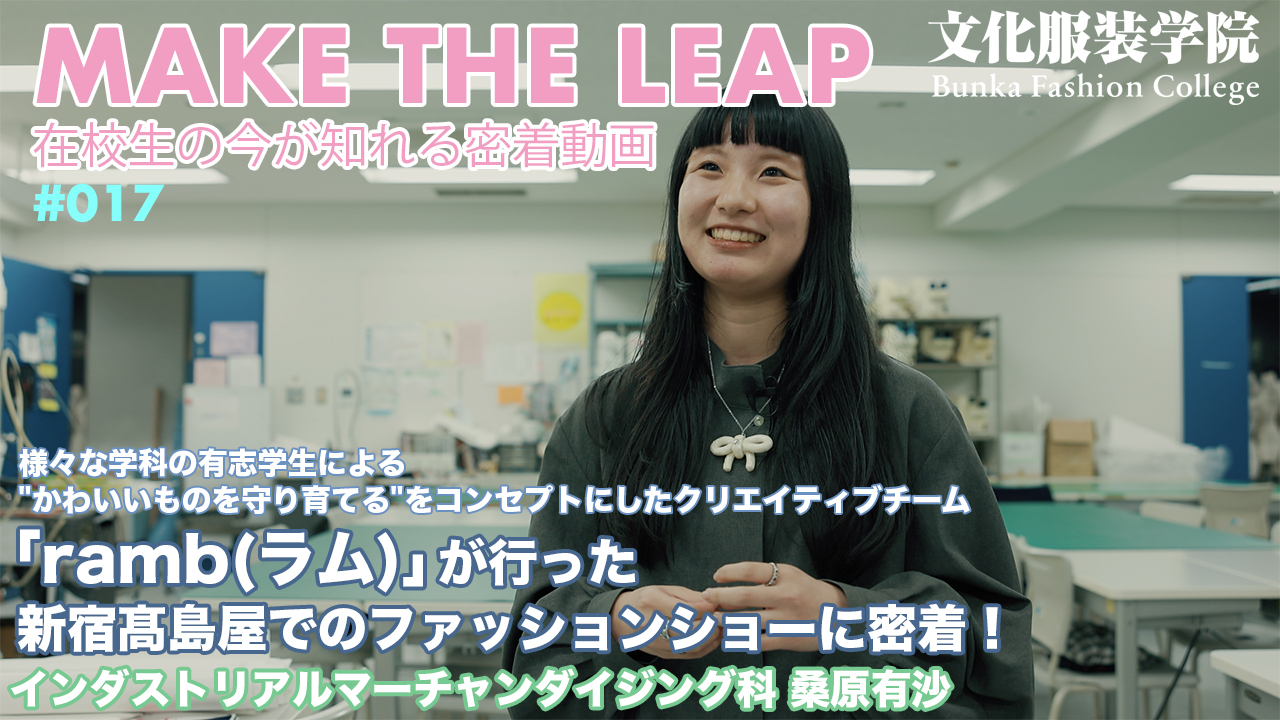 文化服装学院公式youtubeチャンネルの新連載 在校生の今が知れる密着動画『MAKE THE LEAP』。#001は学内で様々な企業や団体とのコラボ、文化の同級生と展示会など多忙な学生生活を送っているニットデザイン科の橋本さんに密着!