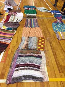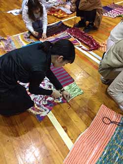 ニットデザイン科2、3年生全員で巨大な編み地を作成