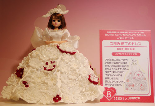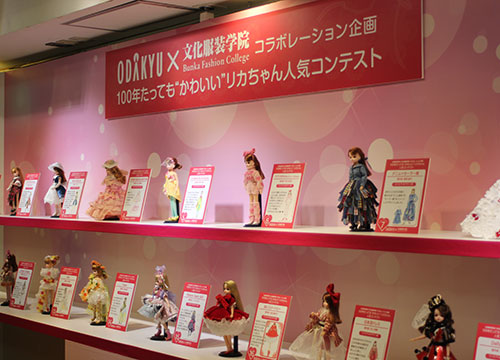 在学生を対象に「100年たっても”かわいい”リカちゃん」をテーマにデザインを募集し、審査を通過した選抜学生がリカちゃんの衣装を制作しました。作品は「誕生50周年記念 リカちゃん展」の中で展示され、来場のお客さまによる人気投票が行われました。
