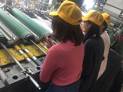 入賞学生は特典として静岡県・東海染工株式会社にご招待頂き、布に自分のデザインがプリントされる様子を見学させて頂きました。