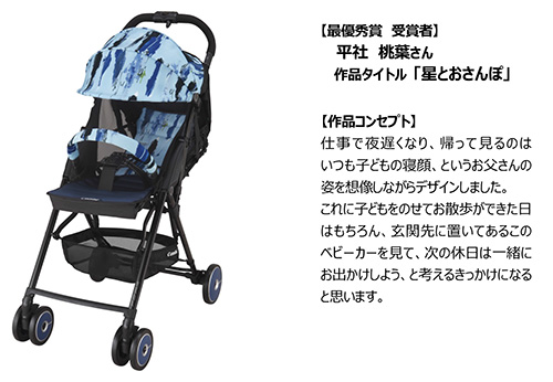 ベビー用品最大手のコンビ株式会社と文化服装学院ファッションテキスタイル科の産学共同企画を実施しました。「パパが思わず押したくなるデザイン」をテーマにデザイン募集を行い、同科3年の平社桃葉さんのデザインが最優秀賞を受賞。製品化されたベビーカーが2018年5月24日よりコンビ公式オンラインショップ「Combi Shop」にて発売されます。