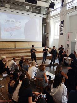 原島さんは7月10日・11日にイタリアのミラノで行われた完成製品のプレゼンテーション審査とワークショップに参加し、インナーのジャンプスーツとトレンチコートのボリューム感、性別を問わないデザインが高く評価されました。