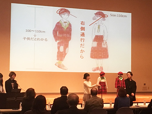 高視認性の機能素材を使用し、子ども・児童を事故から守り被害者にしないこと、ドライバーを加害者にしないことを目指しファッションアイテムを制作。文化祭にて作品展示・来場者による人気投票が行われ、上位10チームが12月5日に実施された最終審査会に進み、発表を行いました。