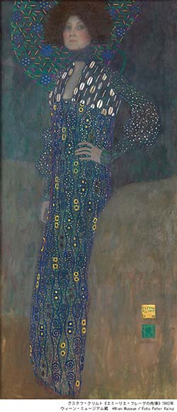 ウィーン・モダン展に出展されるグスタフ・クリムトの傑作《エミーリエ・フレーゲの肖像》のモデル、エミーリエはクリムトが一番愛していたと言われている人物で、当時、自身でもお店を持っていたファッションデザイナーでした。