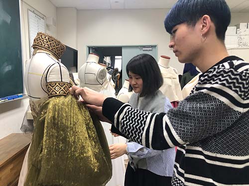 オートクチュール専攻は絵画のドレスを忠実に再現した作品、ファッション高度専門士科は絵画からイメージを膨らませたオリジナルデザインの作品を制作。ドレスの装飾には、オーストリアに本社を持つ世界的なクリスタルブランドのスワロフスキー社より支援を受け、スワロフスキー®・クリスタルを使用しています。