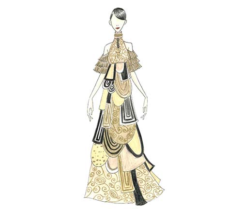 このドレスを文化服装学院 卒業制作ファッションショー及び修了制作ファッションショーにて初公開いたします。ぜひご覧ください。