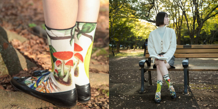 2023年度の取り組みでは、16商品すべてのソックスデザインをファッションプロモーションコースの学生が担当。その後、学生たちはチームに分かれ、各ソックスのキービジュアル撮影、SNS運用など独自のビジネスプランを立て、ソックスの販売数を競う2ヶ月間のプロモーションバトルを行いました。販売は、EC販売と全国のロフト(9店舗)など実店舗でも展開されました。