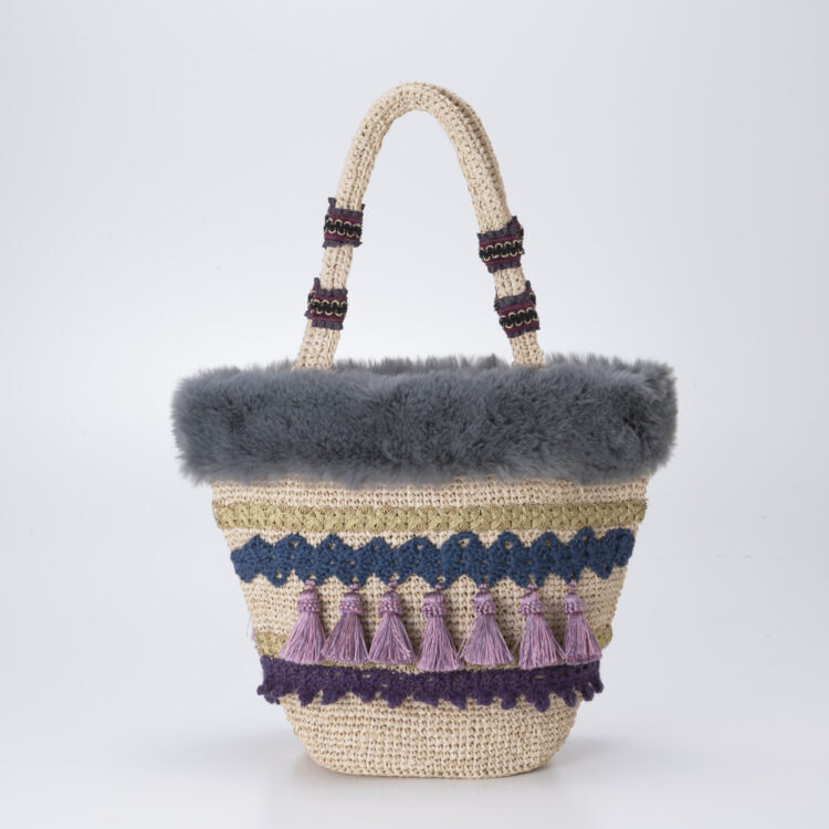文化服装学院 ニットデザイン科×ラフィアバッグブランド・スルシィコラボレーション企画(2023年度) 銀座「教文館」にて展示販売!