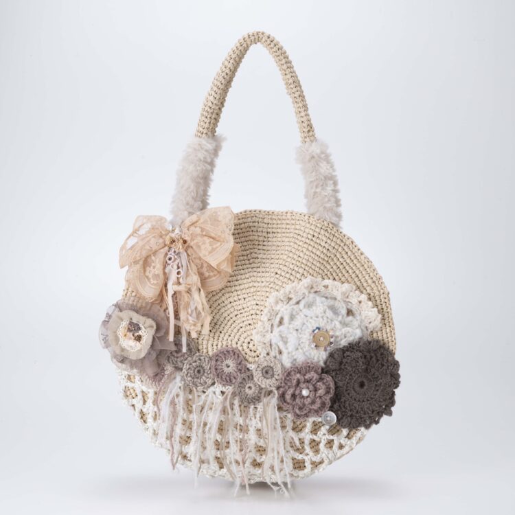 今回のテーマは「秋冬も使えるラフィアバッグ」。毛糸その他の異素材を組み合わせて、土台のラフィア素材を活かし自由にデザイン・装飾、リメイクをするという内容です。