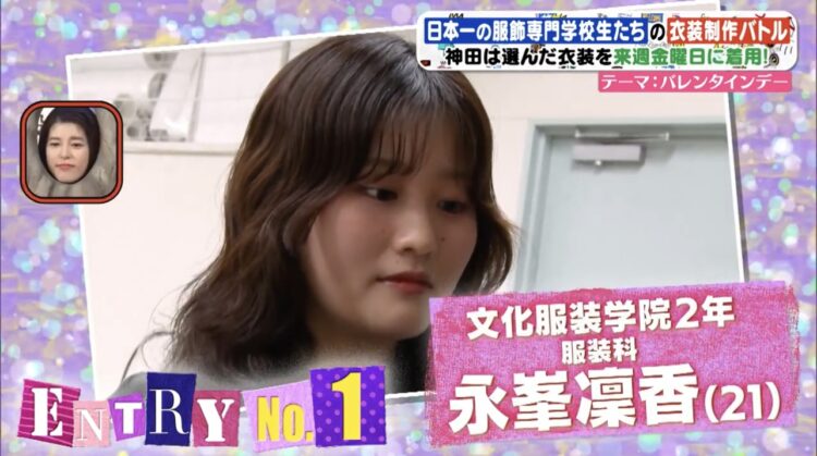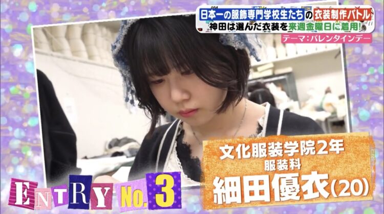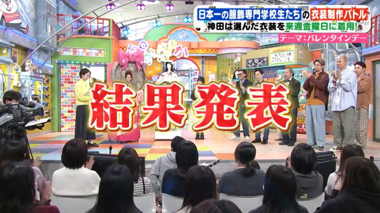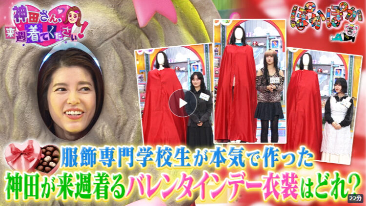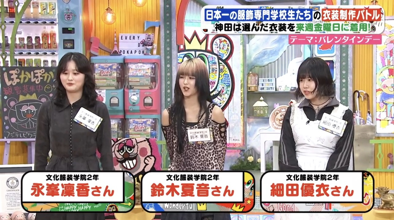 今回、フジテレビ「ぽかぽか」よりオファーを頂き、そんな神⽥さんのために国内外で活躍する数多くのファッションデザイナーを輩出している⽂化服装学院の学⽣にオリジナル⾐装の制作を依頼頂きました。