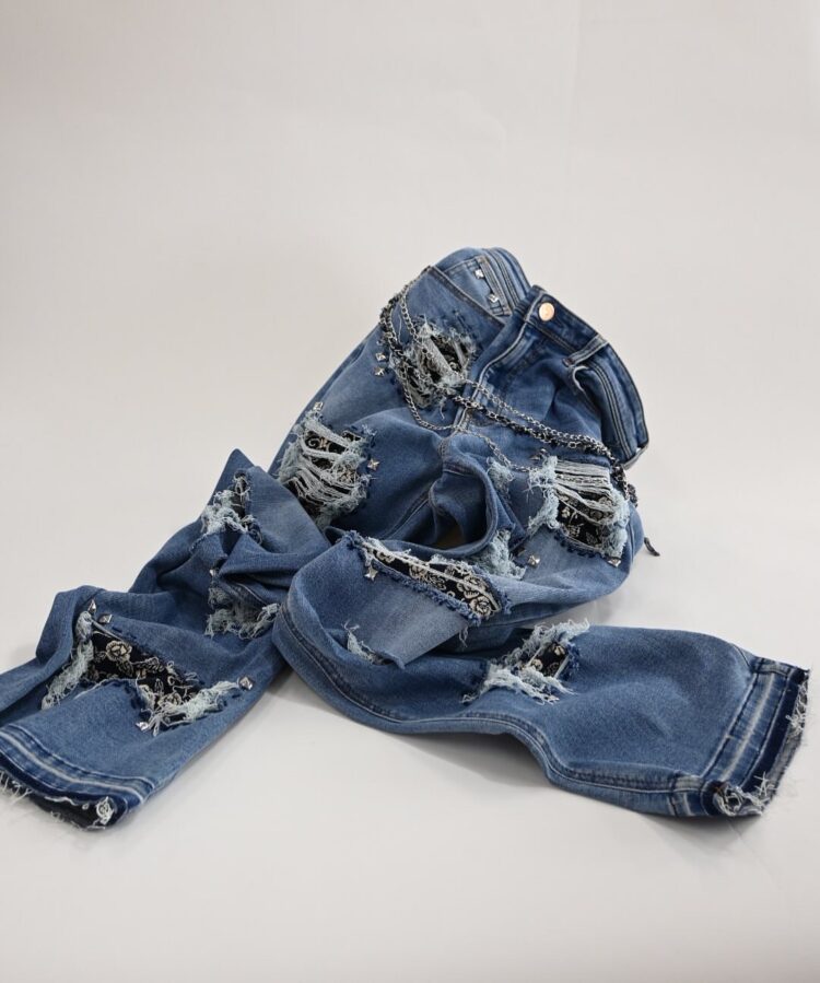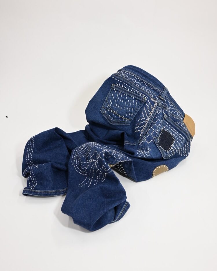 2021年にスタートしたEDWIN様とアパレルデザイン科2年有志学生によるコラボレーション企画『LUTEN』。EDWIN様から提供いただいた廃棄予定のジーンズを、解体して再構築し商品として販売するアップサイクルプロジェクトです。