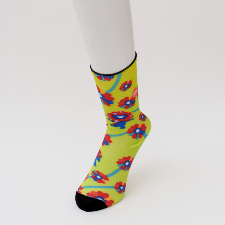 万博公式キャラクター「ミャクミャク」をモチーフに、文化服装学院の学生がデザインしたソックスです!今後、万博場内およびHOTSOX公式サイトでも順次発売となる予定です。販売場所や日程は随時情報更新いたします。