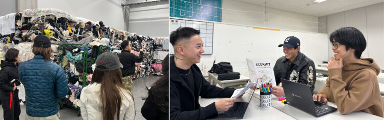 本授業は、株式会社ECOMMIT、CANARI株式会社との産学連携により実施され、学生は実在する企業課題に向き合いながら学びを深めました。取り組みの中でファッション産業が抱える構造的課題への理解を深めるとともに、ECOMMIT 東京サーキュラーセンターの見学を通じて、循環型社会の現場を体感しました。最終的にはゴールデンサークル理論をベースに、顧客の共感を起点としたストーリー性のあるリユース品販売戦略を企画・提案します。