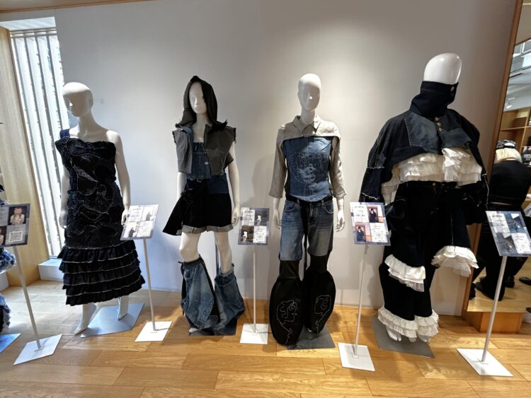文化服装学院アパレルデザイン科の学生たちが、株式会社エドウインで廃棄予定だったデニムパンツに新たな視点を加え、解体・再構築を行いました。