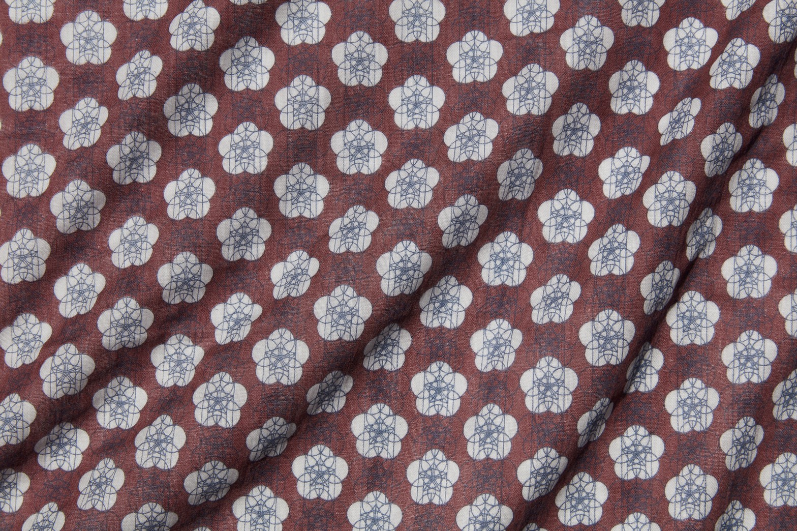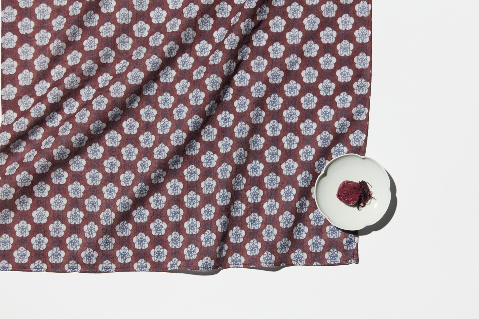 「+F」には文化服装学院 FD 専攻の F、Fashion の F、風呂敷の F、災害時やファッションとしても自由に 使えるという Free の F という意味が込められています。 ファッションのスペシャリストを目指している学生たちとの相性が良い素材「布」であること。また、 「布切れ 1 枚」を自由に使いこなす日本人の知恵と文化は、世界からの注目も高く、「生活」はもちろん 「防災」の場面でも役立つ力を持っていると感じました。 風呂敷のデザインポイントは、梅干しが日本に古くから伝わる食材で、幅広い世代の方から今なお愛され 続けていることから、年配の方から 10 代の方まで使って頂けるような梅の花を取り入れた温かみのある 色合いと、アメリカ 70 年代カルチャーを意識して、FD 専攻学生がデザインしました。