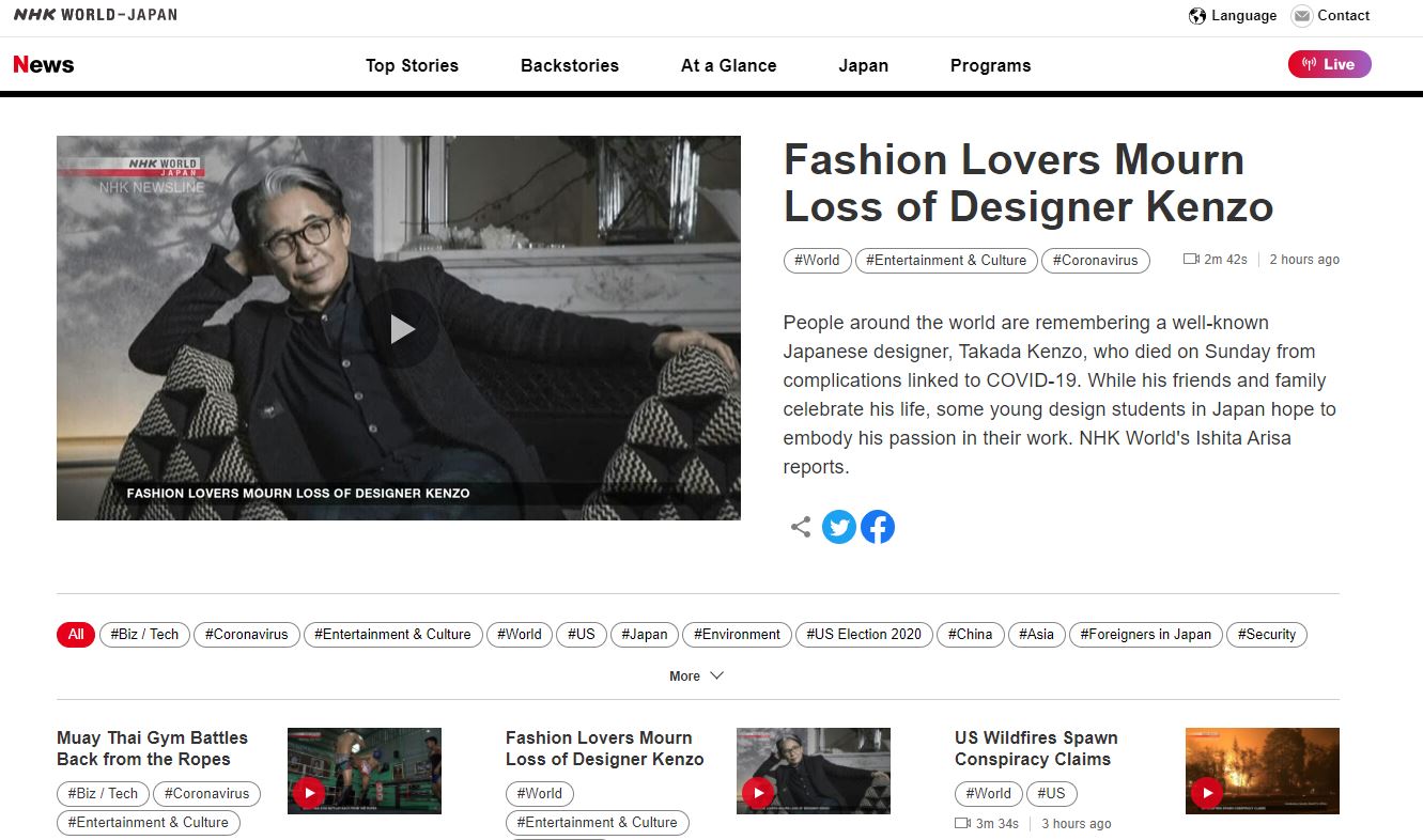 「NHKワールドJAPAN」文化服装学院卒業生 高田賢三氏ご逝去に関する取材協力を行いました