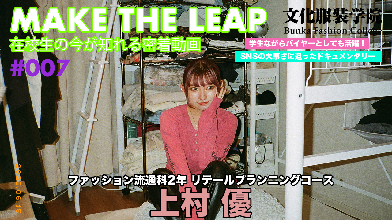 文化服装学院公式youtubeチャンネルの新連載 在校生の今が知れる密着動画『MAKE THE LEAP』。#001は学内で様々な企業や団体とのコラボ、文化の同級生と展示会など多忙な学生生活を送っているニットデザイン科の橋本さんに密着!