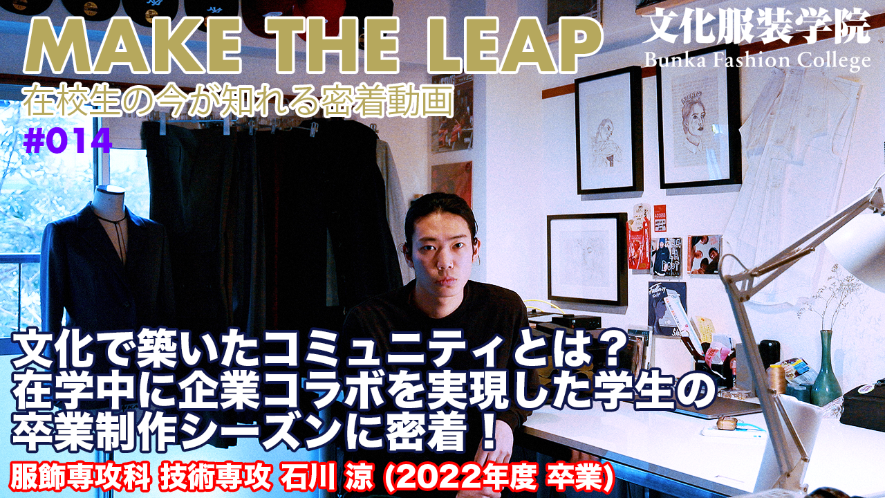 文化服装学院公式youtubeチャンネルの新連載 在校生の今が知れる密着動画『MAKE THE LEAP』。#001は学内で様々な企業や団体とのコラボ、文化の同級生と展示会など多忙な学生生活を送っているニットデザイン科の橋本さんに密着!