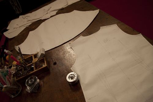 文化服装学院教員 藤嶋祐子によるキャストへの技術指導及び本学院備品の貸出、アパレルデザイン科学生によるデザイン画提供や本学園ファッションリソースセンター所蔵の作品、事業局購買部の商品などを撮影用の装飾として貸出を行いました。また、エキストラとして多くの文化服装学院生も撮影に参加しました。