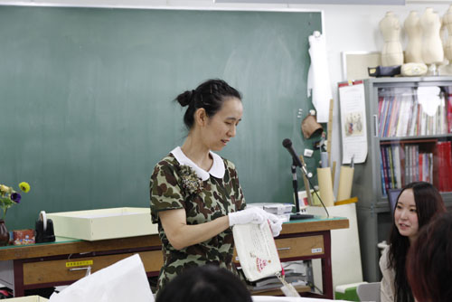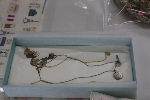 普段はアクセサリー製作がメインのこの授業ですが、今回は特別に中川先生がNOJESSとコラボレーションした商品を持ってきてくださいました。