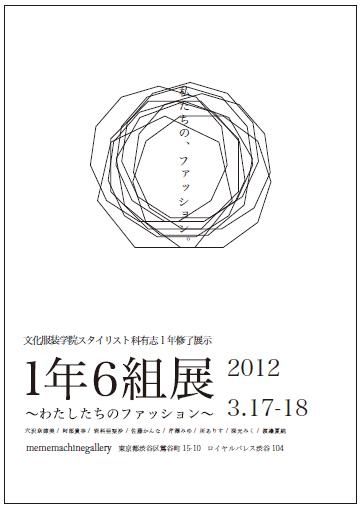 同団体の運営メンバーの阿部貴幸さんが企画する、スタイリスト科有志による修了展示「1年6組展~私たちのファッション~(仮)」が3 月17、18 日に渋谷のミームマシンギャラリーにおいて開催予定。