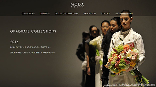 ウエブサイト「MODA TOKYO」のGRADUATE COLLECTIONSコーナーにて、