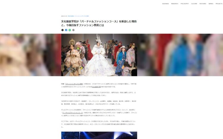 ZOZOグループのメディア媒体『ファッションテック』「バーチャルファッションコース」を新設した理由と、今後目指すファッション教育 特集記事掲載
