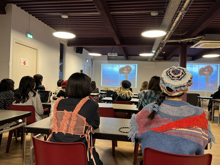 ファッションセミナーでは、文化服装学院アパレルデザイン科の卒業生で、帽子デザイナーの日爪ノブキ(ひづめのぶき)さんを講師にお迎えしました。
