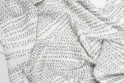「P E A C E」 (2016) 素材:麻布 手刺繍 サイズ:116 x 150cm