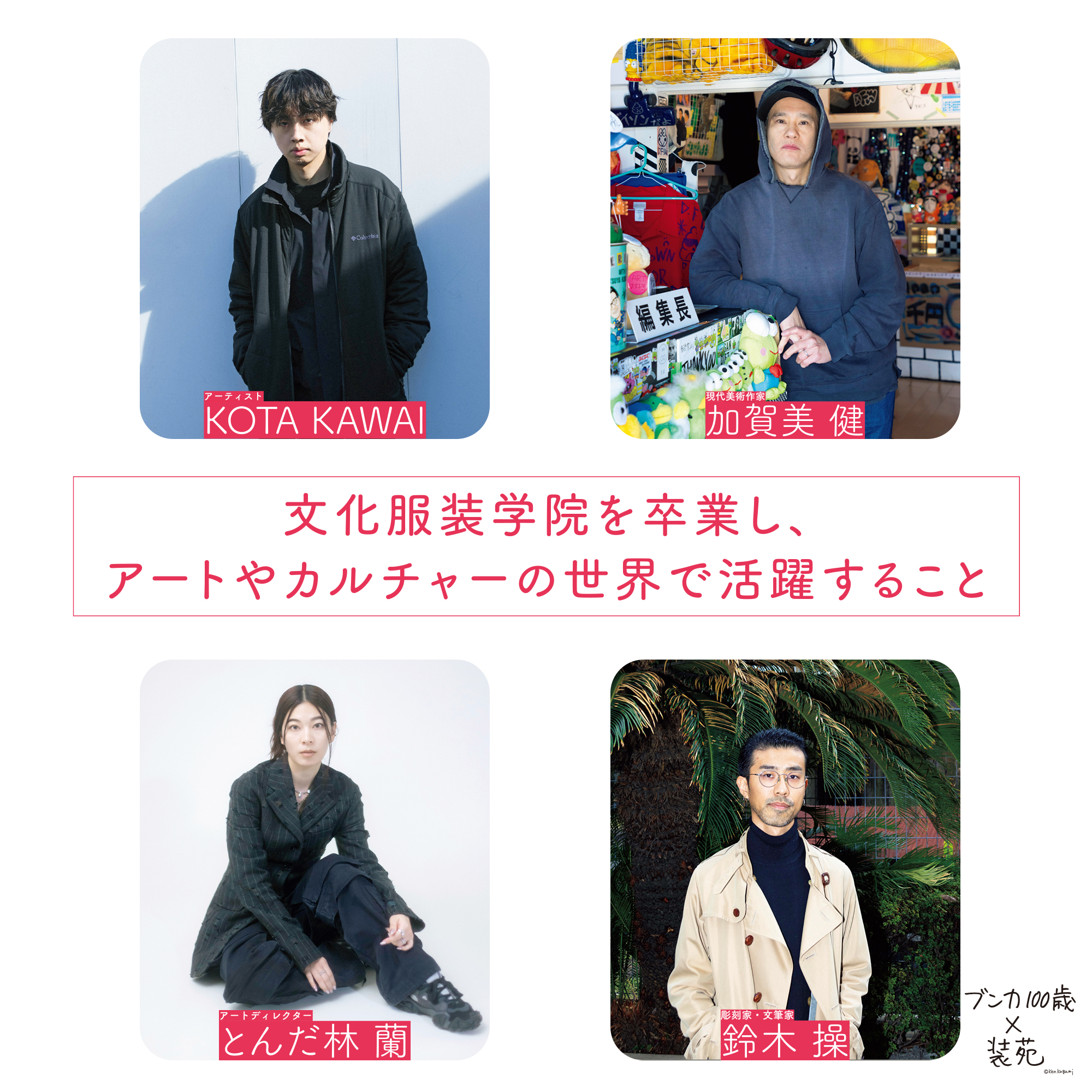 2023年、創立100周年を迎えた文化服装学院。文化の100歳をお祝いした好評連載の9回目。今回は、文化服装学院でファッションを学んだ後、ファッションではなくアートやカルチャーの分野で頭角を現す4名のクリエイターにフォーカス。