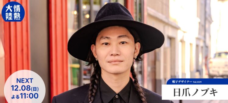 12月8日(日)よる11時(23時)よりMBS/TBS系全国ネットで放映予定の『情熱大陸』(帽子デザイナー:日爪ノブキ)に撮影協力を行いました。