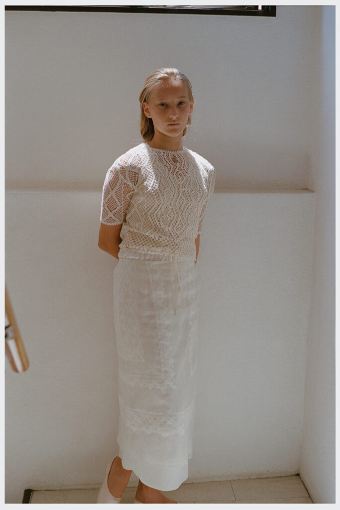 思い出や経験をつむぐように時間を掛け、編んで織っていくレース。佐藤百華さんと宮崎 風さんが立ち上げたユークロニア(EUCHRONIA)には、身体と心を包む素材の優しさと、モードのスタイリッシュな空気とが共存している。2025年春夏から本格展開をはじめたこのブランドが表現するコンセプチュアルな世界とは?