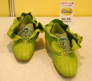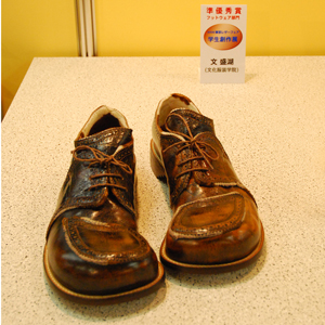 この中で一際、注目を集めるのが「T.L.F.学生創作展コンテスト」。靴、バッグ、ベルト、帽子、アクセサリーなど皮革を使用した作品でデザイン・技術を競います。今年は23校が参加し、第80回(09年6月)と第79回(09年1月)の応募作品約700点の応募作品で審査がおこなわれ、全賞6賞のうち、5賞が文化服装学院生の受賞となりました。