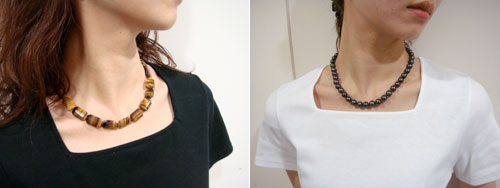 左から「新人デザイナーファッション大賞」ウィメンズ部門の秀作賞を受賞した森島さんの作品、同部門入賞の五十嵐さんの作品