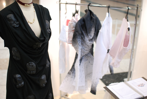 文化服装学院関係では今年度の入賞者、服装科2年に在学中の森島里帆さんと2007年に服装科卒業後、フリーで活躍している五十嵐一貴さんが参加しました。会期中は多くのバイヤーが展示ブースを訪れ、今後のビジネス展開に繋がる話も多数出た模様。今後の2人の活躍に期待です。