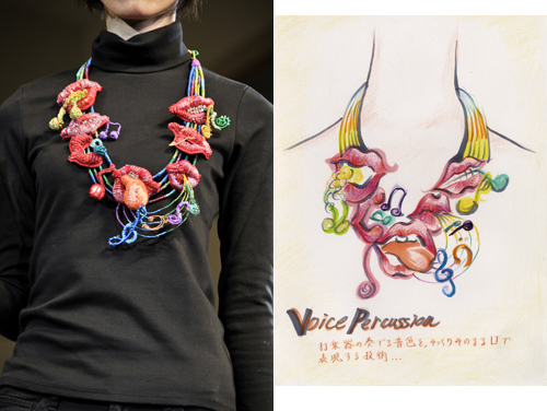 帽子、シューズ、バッグ、アクセサリー、テキスタイルの服飾工芸分野を対象としたコンテストで今回のテーマは「パーカッション」=打楽器 でした。