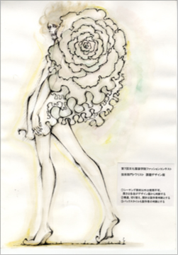 課題のデザイン画に基づき、トワルを使って作品を制作します。デザイン画を具現化するイメージ力と構成技術を競うコンテストです。