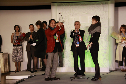 関係者や来場者による人気投票の結果、アパレルデザイン科2年に在学中の石井宏美さんがグランプリを獲得しました。石井さんの作品は企業の作品を抑え、トップの票数を獲得し、作品のカットワークの素晴らしさが会場で賞賛されていました。