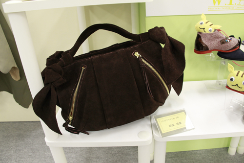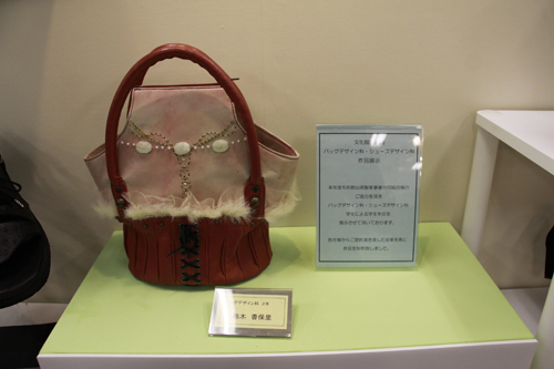 また、展示コーナーではファッション工芸専門課程の学生作品(バッグ・シューズなど)が展示されました。服飾関連の学校が多数参加するなか、文化服装学院の作品はアート的なものから、実用的・機能的なデザインの作品まで、もっとも多くの作品が出展され、個性豊かな学生作品に業界関係者の方々の注目を集めていました。