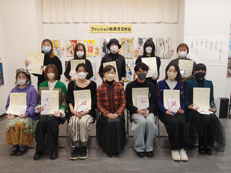 各賞と併せて、展示期間中の2日間に来場者による人気投票で選ばれる「フレンドシップ賞」も選出され、2月10日(金)にはF館ギャラリーにて「ファッション画展」の表彰式が行われました。