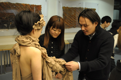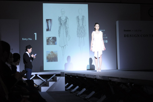 文化服装学院の卒業生であるSOMARTAデザイナーの廣川玉枝さんやbeautiful peopleの熊切秀典さんなど東京コレクションやファッション誌などで人気のデザイナーが審査を担当しました。厳正なる審査の結果、銀賞をアパレルデザイン科3年に在学中の徐仁さんが受賞しました。選ばれた優秀作品は今後、開催される三菱レイヨン・テキスタイル2013SS展示会で展示される予定です。