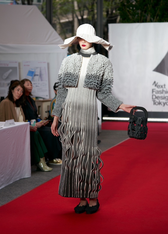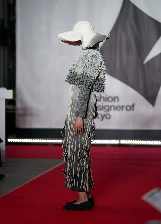 最終審査員による厳正な審査の結果、東京都知事賞でフリー部門の大賞を文化服装学院 Ⅱ部(夜間部)服装科在学中の高山 光さんが受賞しました。