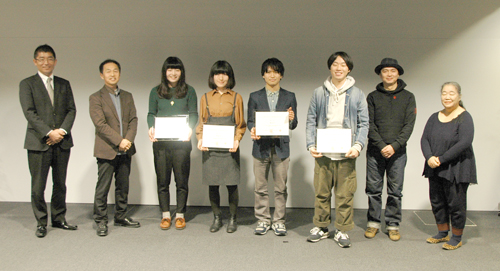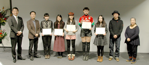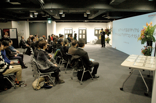 応募総数106枚のデザイン画の中から大賞2名、佳作4名、特別賞5名の受賞者が決定し、大賞に選ばれた作品は協力会社のサポートでサンプルが制作されました。表彰式とサンプルのお披露目が、2014年1月31日(金)に原宿にあるホンダアドバンスデザインスタジオで行われ、ゲストで来て頂いた東京デザイナーファッション協議会議長の大塚陽子さんや審査員も務めて頂いたファッションデザイナーの荒川眞一郎さんを始め、本田技術研究所のクルマのデザイナーやエンジニアの方々にも様々な視点から学生に激励のお言葉を頂きました。