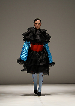 「OVER THE RAINBOW」というテーマで募集された今年の新宿ファッションフィールド。応募総数1,807点のデザイン画の中から、20点が選ばれ、文化服装学院からは3名が最終審査に臨みました。2015年11月21日(土)に新宿文化センターで行われた最終審査の結果、1名がジュングループ賞を受賞しました!