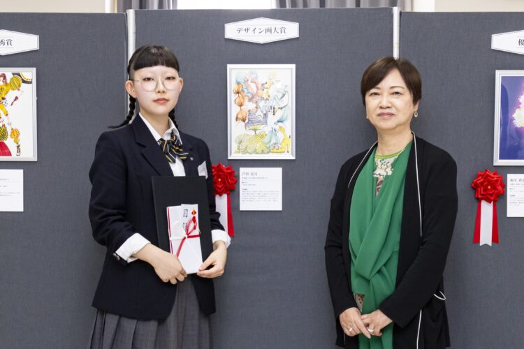 ■デザイン画大賞 芦野 夏月さん「コンテスト初受賞となったので、とにかくうれしかったです。友人、家族、先生方もほんとうに喜んでくれました。将来の夢はアーティスト!その実現のために、まずは服づくりを学ぶ予定です」