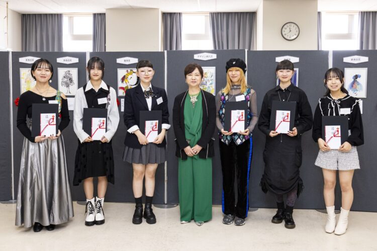 文化祭期間中の11月4日(土)、文化服装学院主催「高校生ファッションデザイン画コンテスト」の表彰式が行われ、【デザイン画大賞】【優秀賞】【審査員賞】を受賞した7名の内、6名の方が出席されました。