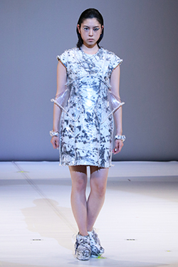 新宿ファッションフィールドの今年のテーマは「My Blue Heaven ワタシノアオゾラ」。 応募総数1,411点のデザイン画の中から、20点が選ばれ、文化服装学院からは2名が最終審査に臨み、実物作品を披露しました。 赤穂 良和 (ファッション高度専門士科4年) ティーレ ニコラ ステファニー (アパレルデザイン科2年) 写真撮影:目白大学 社会学部メディア表現学科