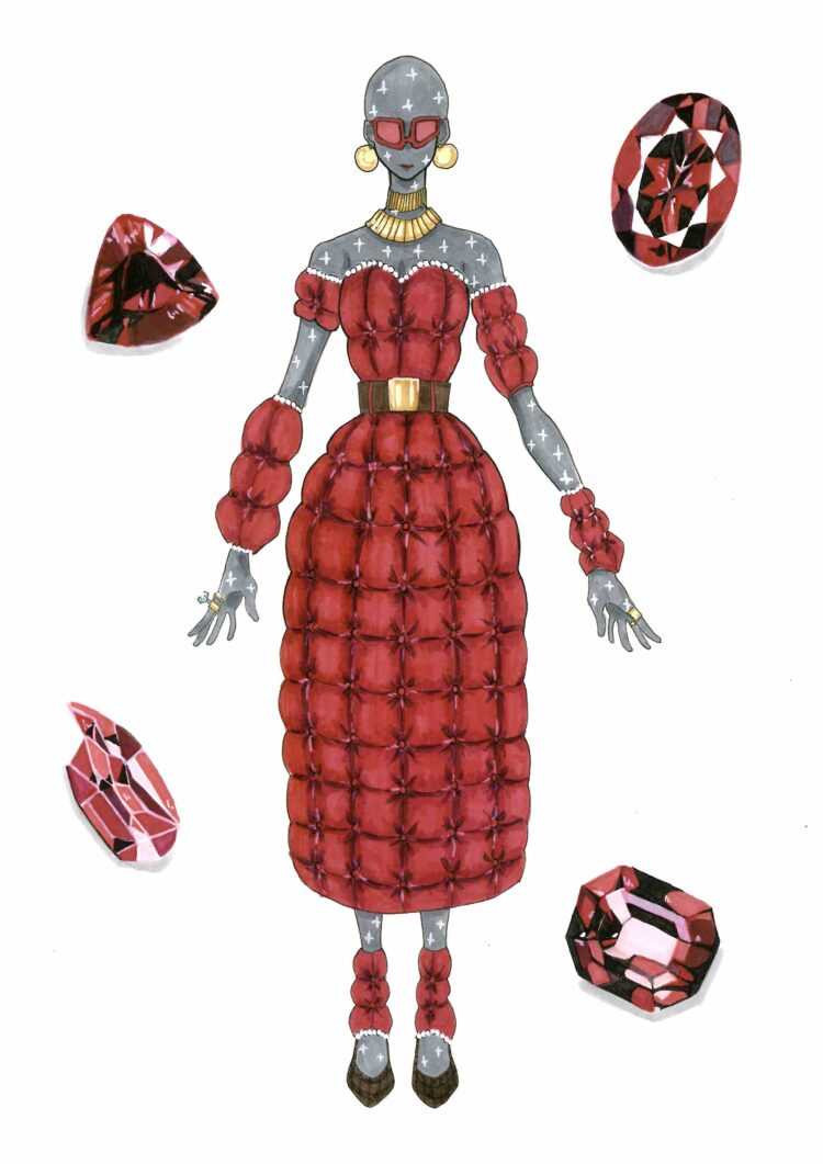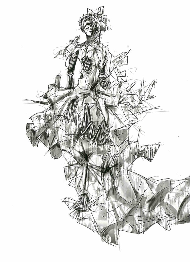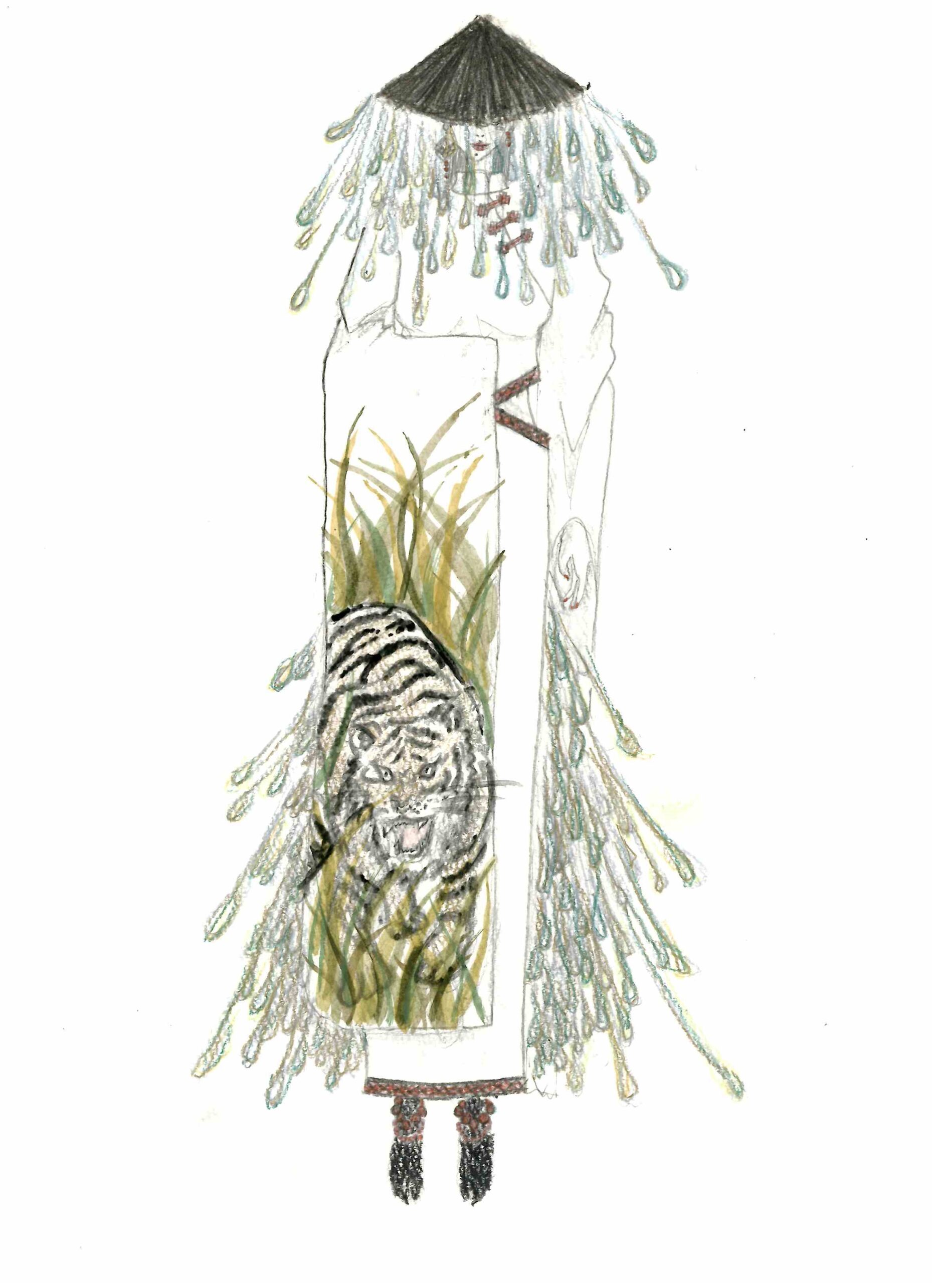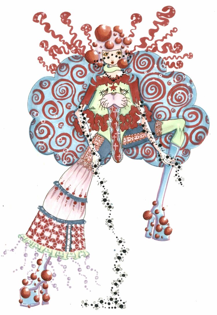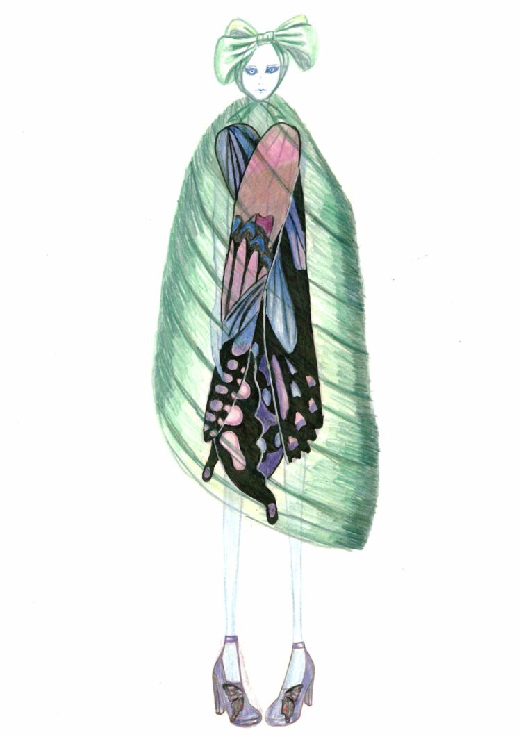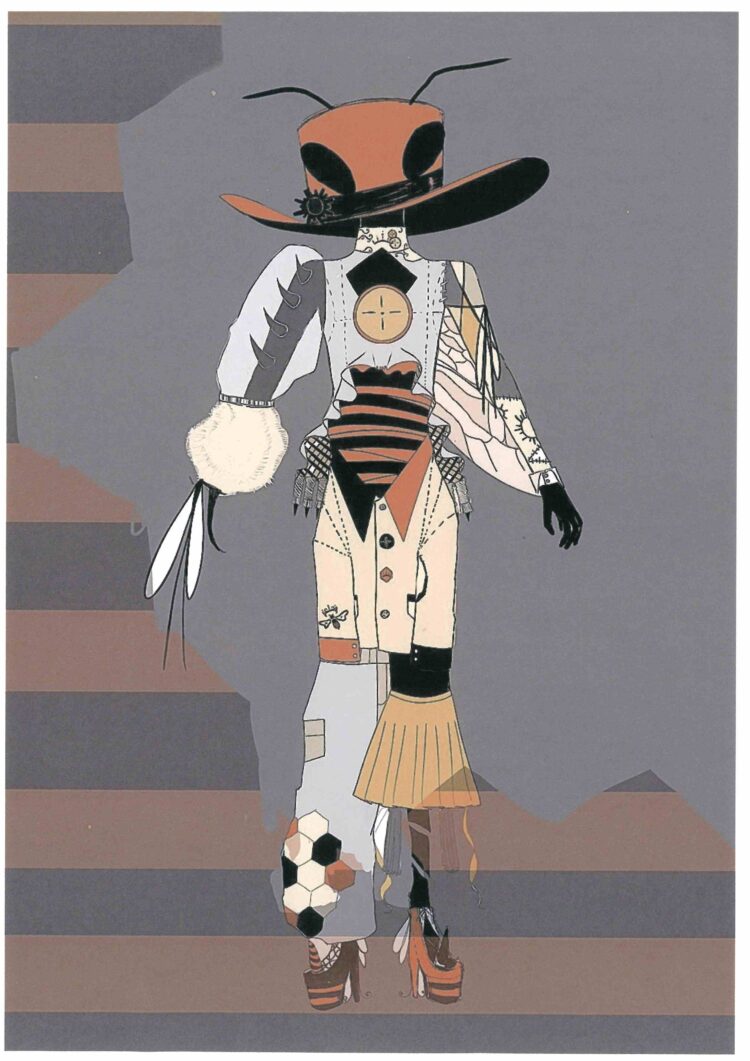 青木規子先生 選評「このデザイン画は男性なのか女性なのか分からないけれど、やさしさと強さの間の微妙なゆらぎがあって、独特の世界観を作っています。服になったときもきっとかわいいでしょうし、作者の“憧れの人”は知らない人だけどすごく似合うんだろうなって思わせる、その説得力がすごく光っていました」